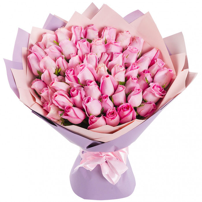 Букет из 51 розовой розы в персональном стиле