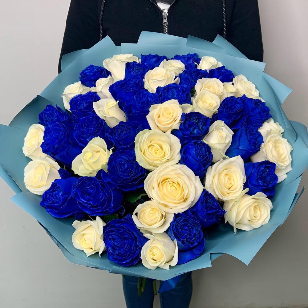 Букет из 51 синей и белой розы
