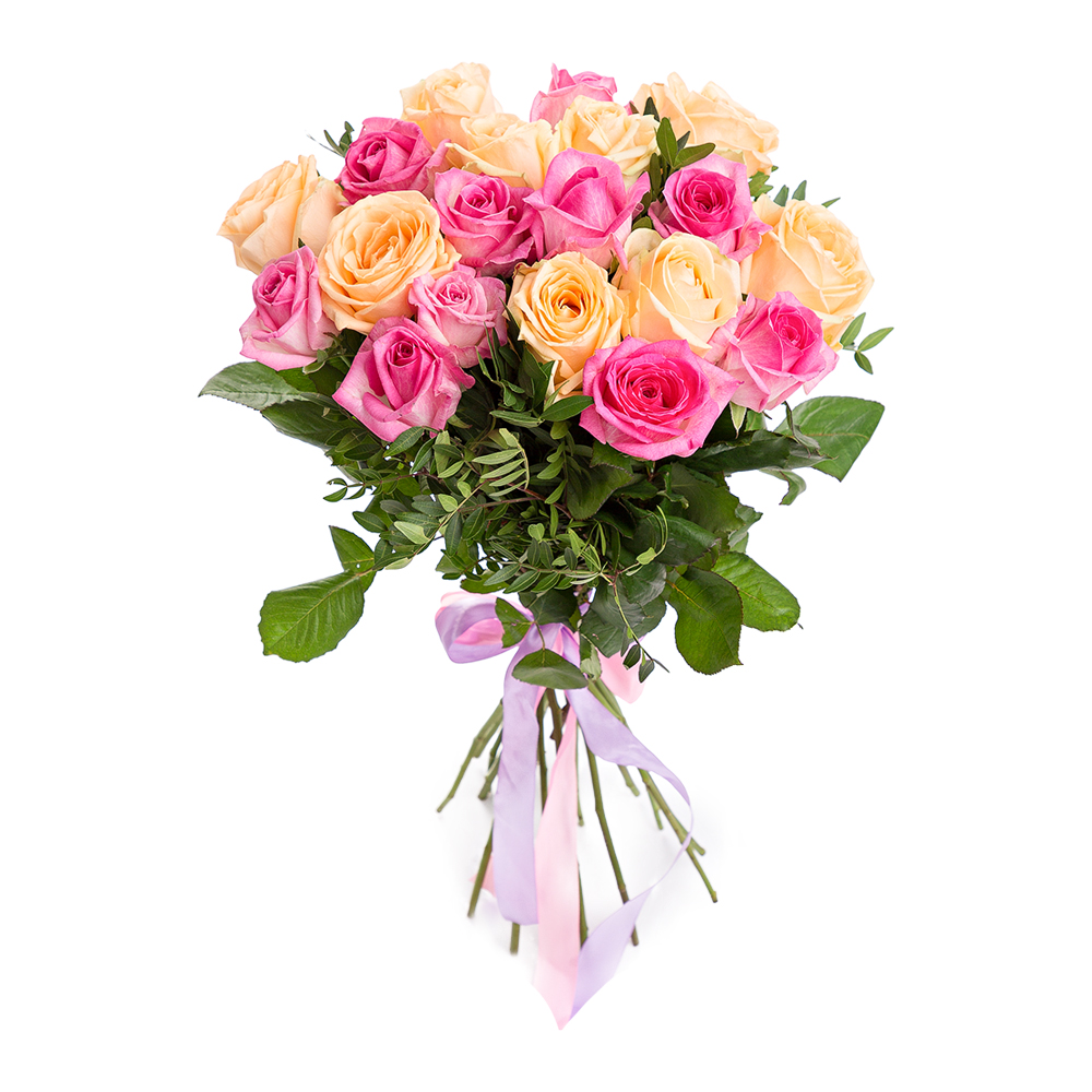 Букет из 19 разноцветных роз 60 см