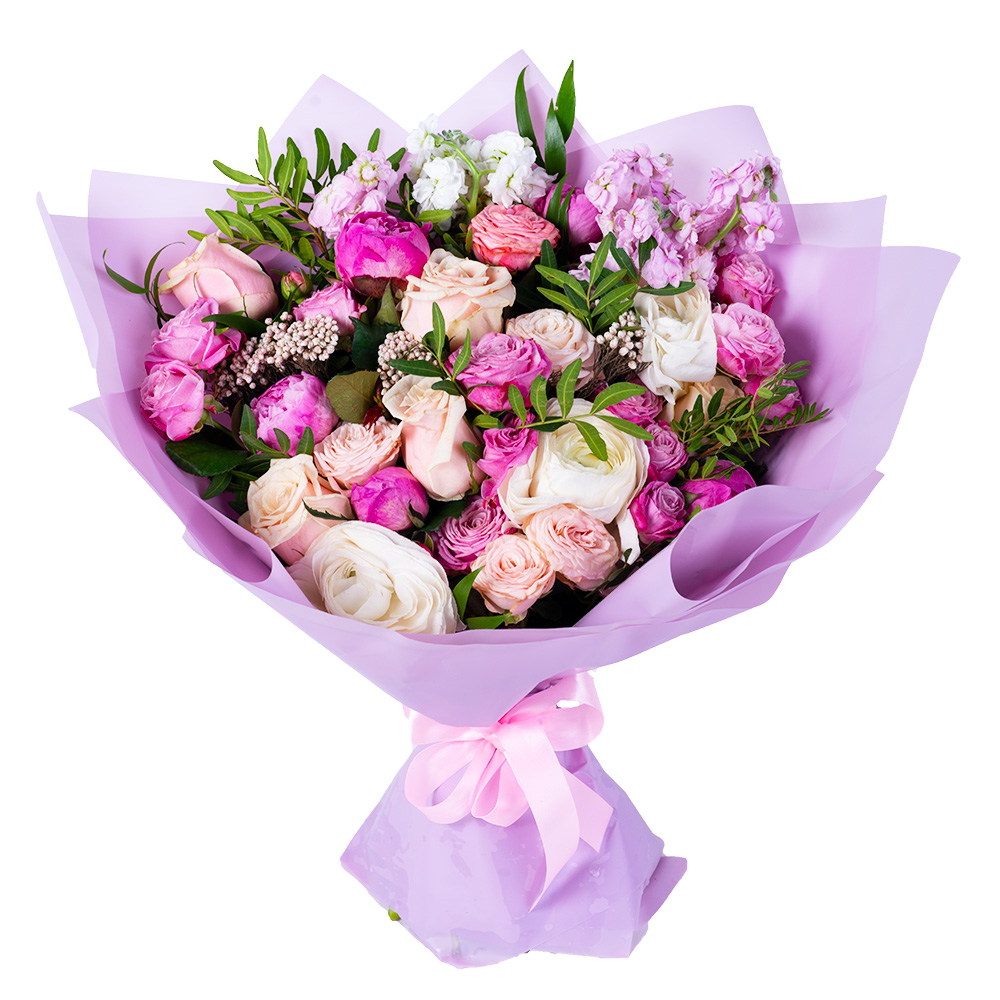 Букет из роз, сирени и ранункулюсов