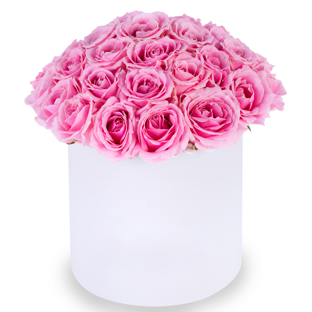 Букет из 35 розовых роз premium в кремовой шляпной коробке