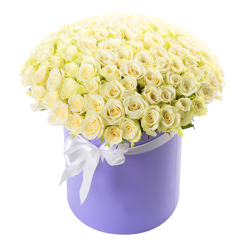 101 белая роза в шляпной коробке