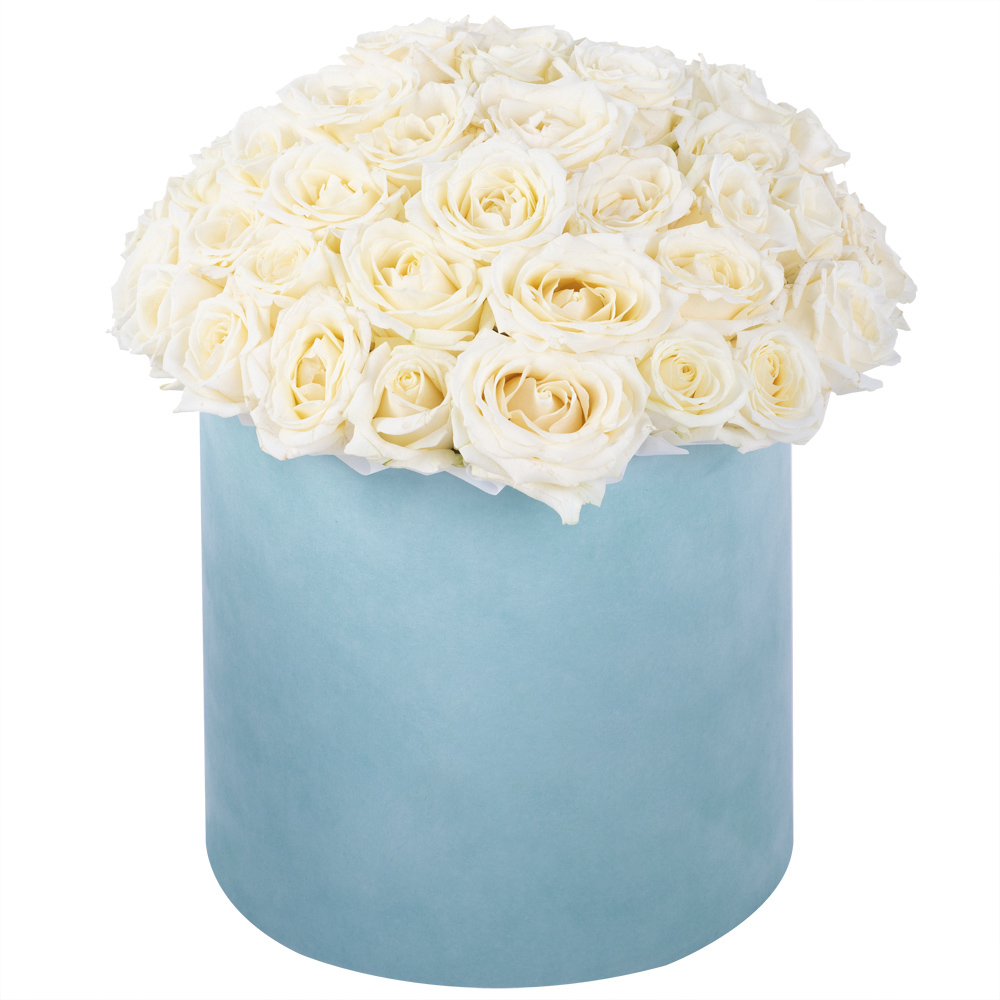 Букет из 51 белой розы premium в бархатной шляпной коробке