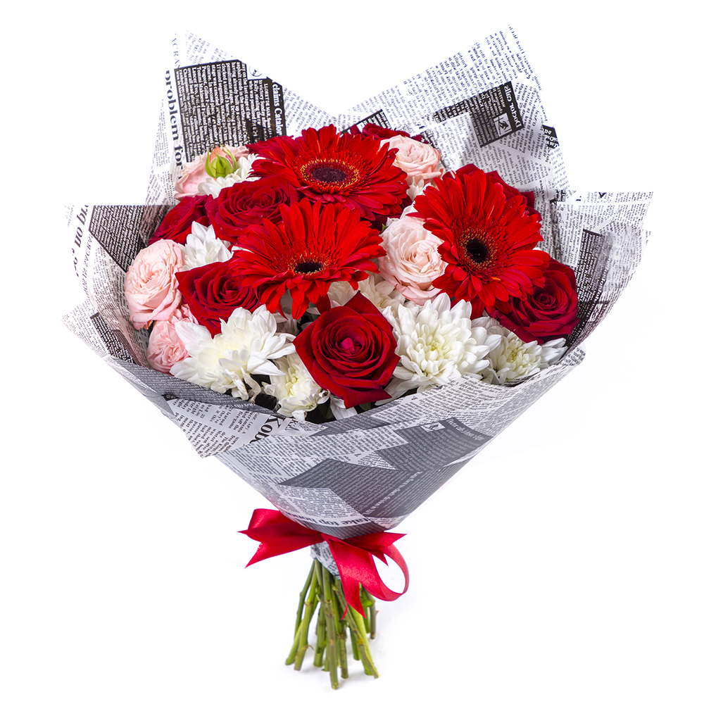 Букет из роз, хризантем и гербер