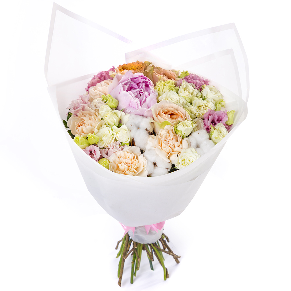 Букет с хлопком и пионовидной розой