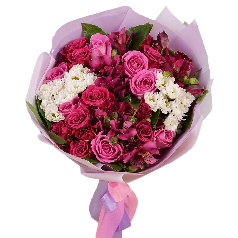 Букет из альстромерий, рускуса и роз