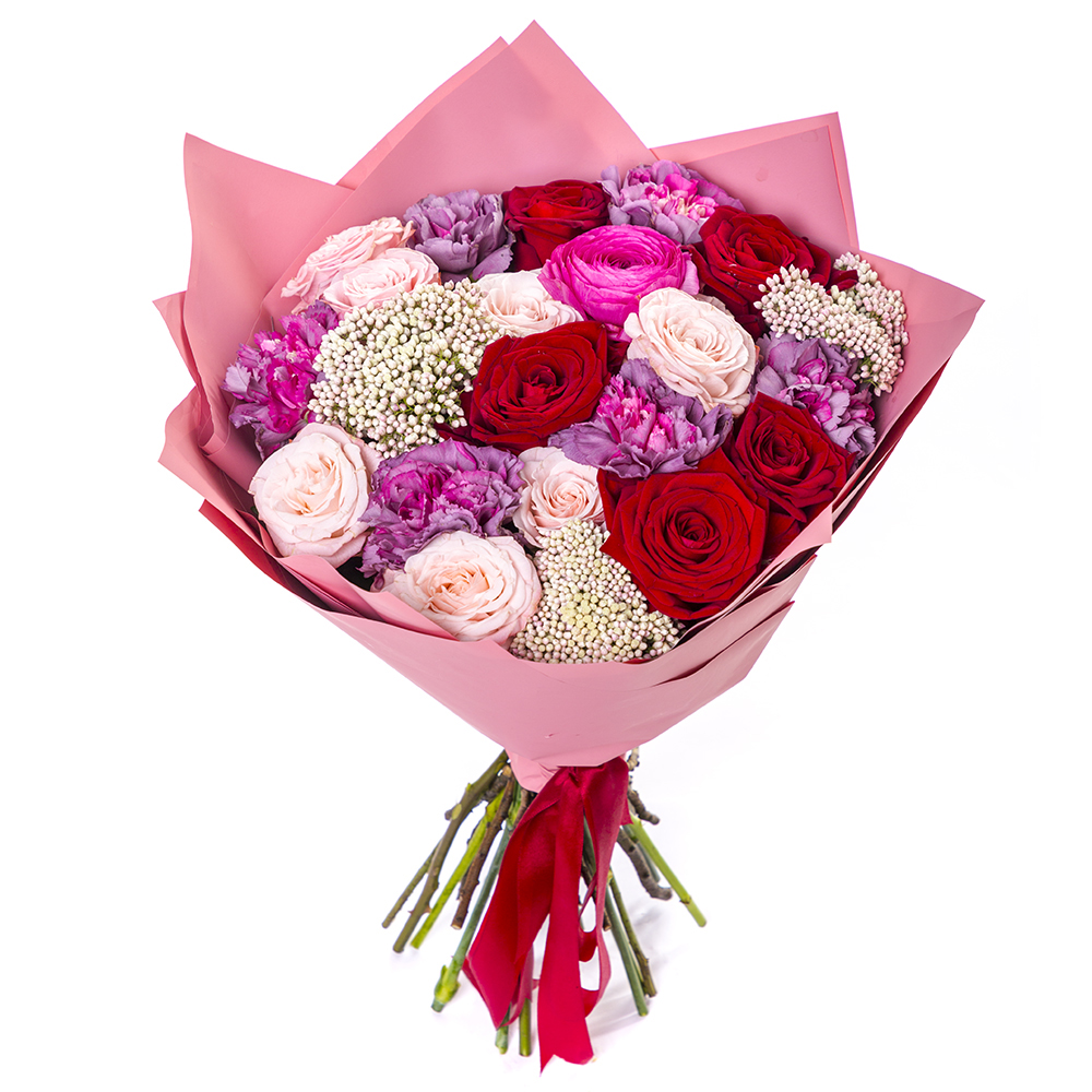 Букет из роз, диантуса и озотамнуса