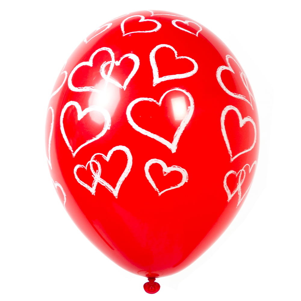 Воздушный шар с рисунком сердечками красный
