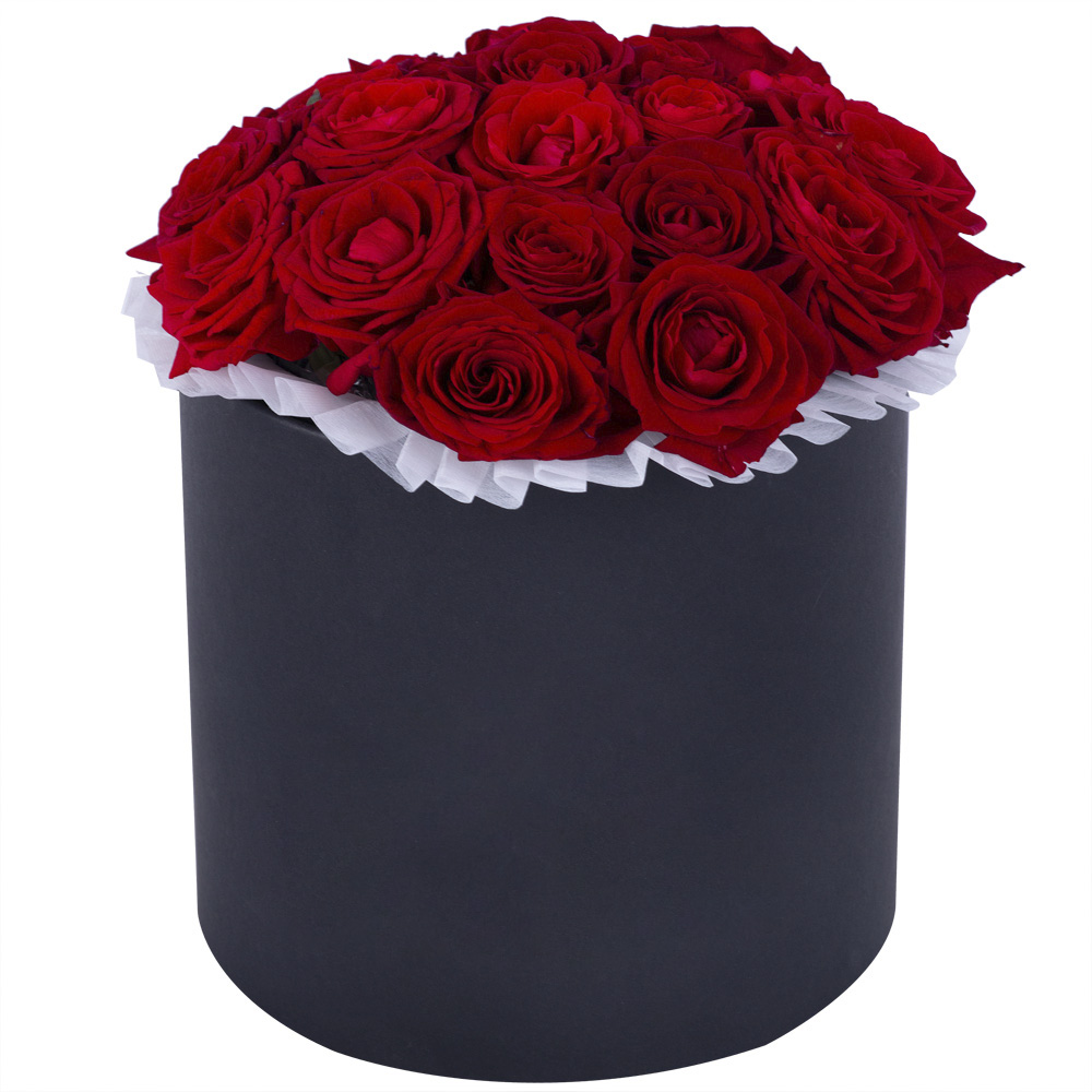 Букет из 21 красной розы premium в черной шляпной коробке
