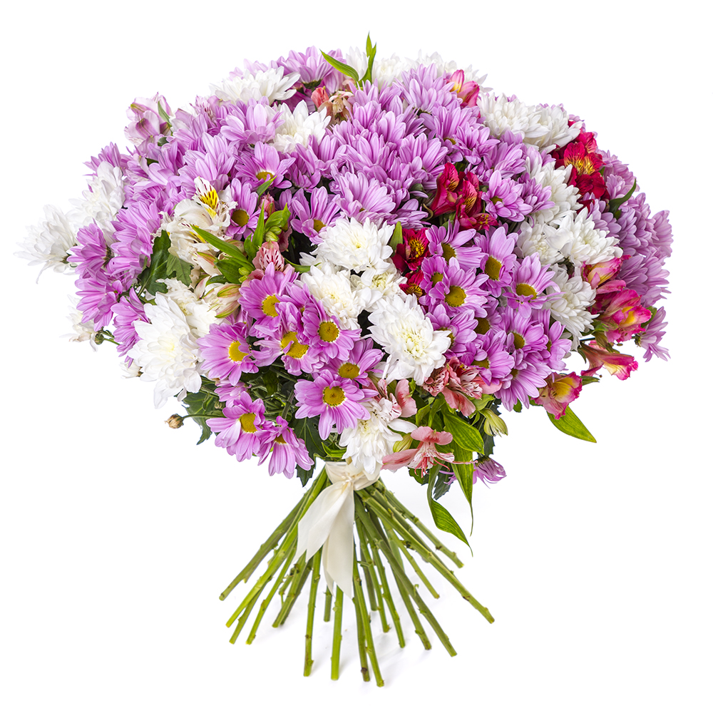 Букет из 19 разноцветных хризантем
