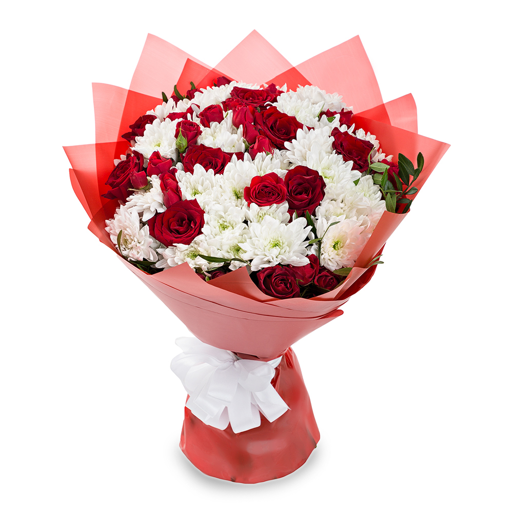 Букет из роз и хризантем