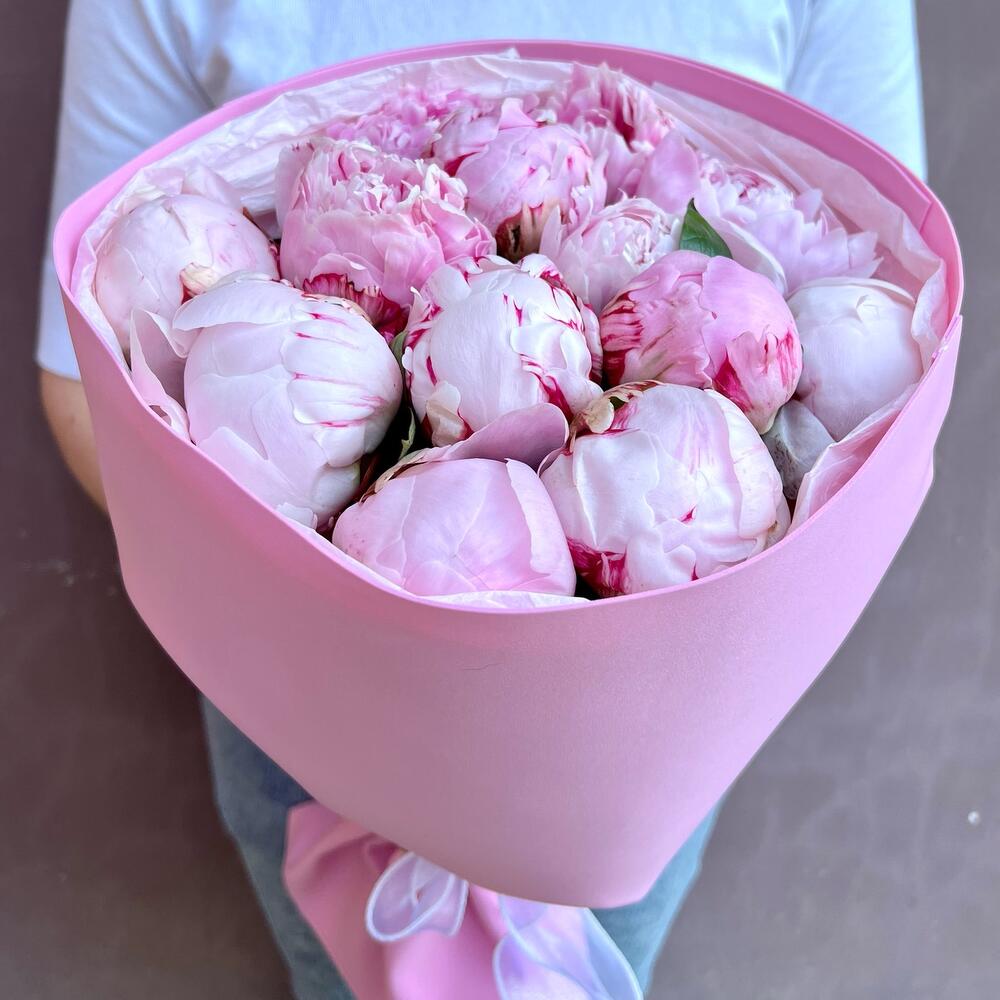 Букет из 11 нежно-розовых пионов