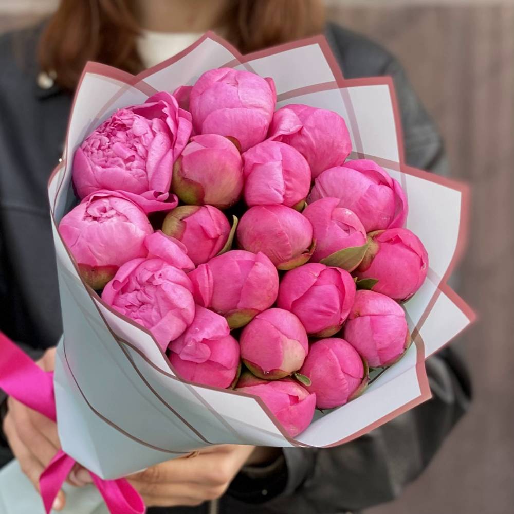 Букет из 19 розовых пионов