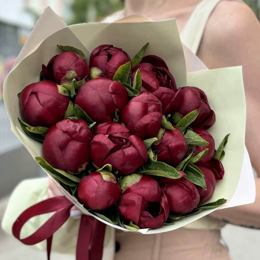 Букет из 15 бордовых пионов