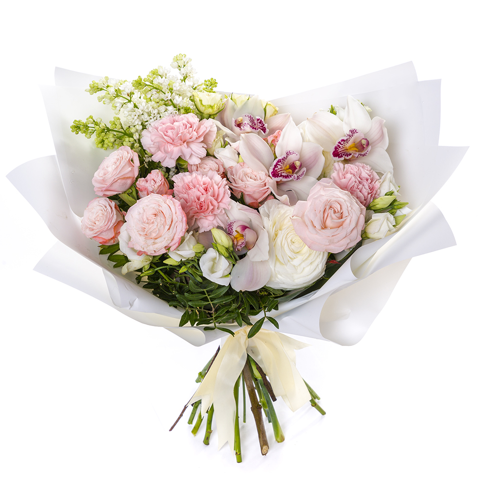Букет из ранункулюсов, роз и орхидей