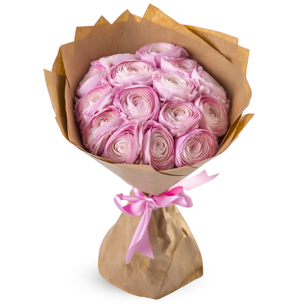 15 розовых ранункулюсов