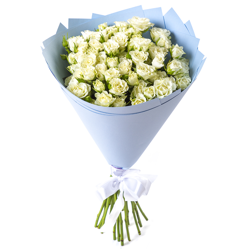 19 белых кустовых роз в крафте