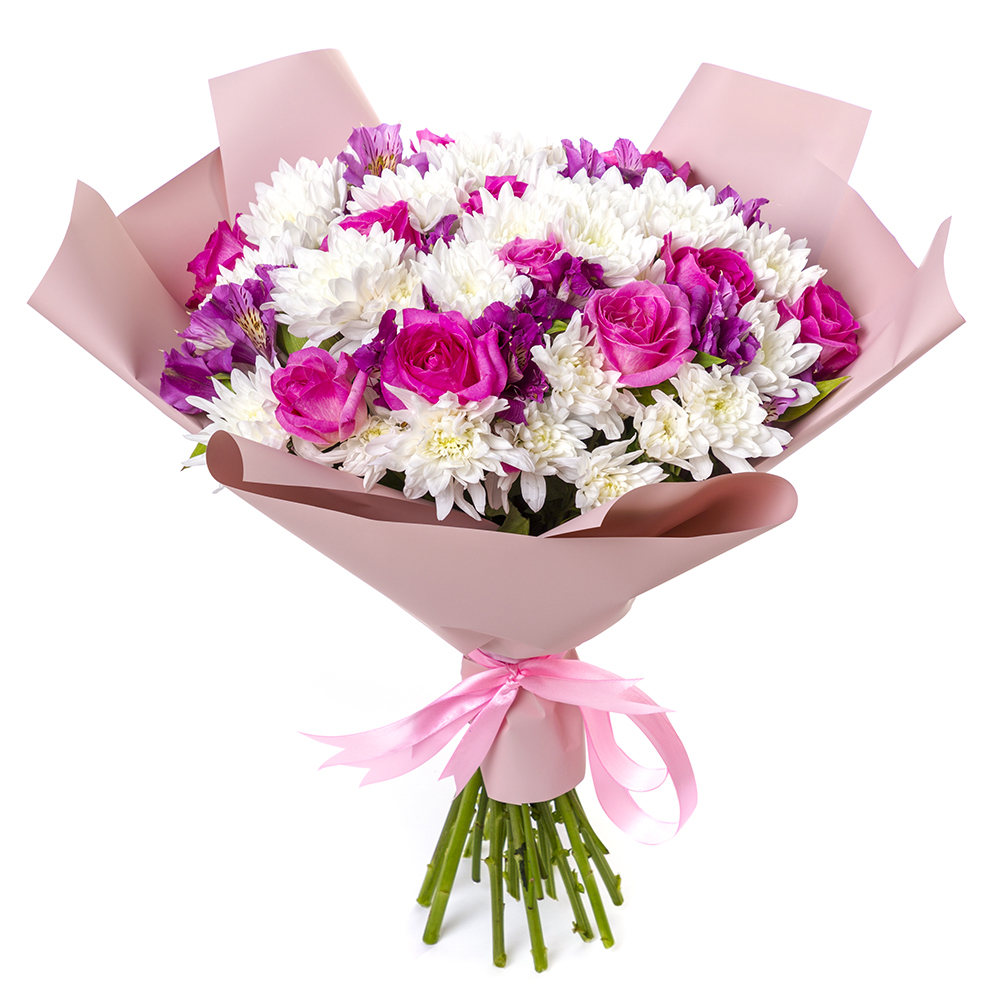 Букет из роз, хризантем и альстромерии