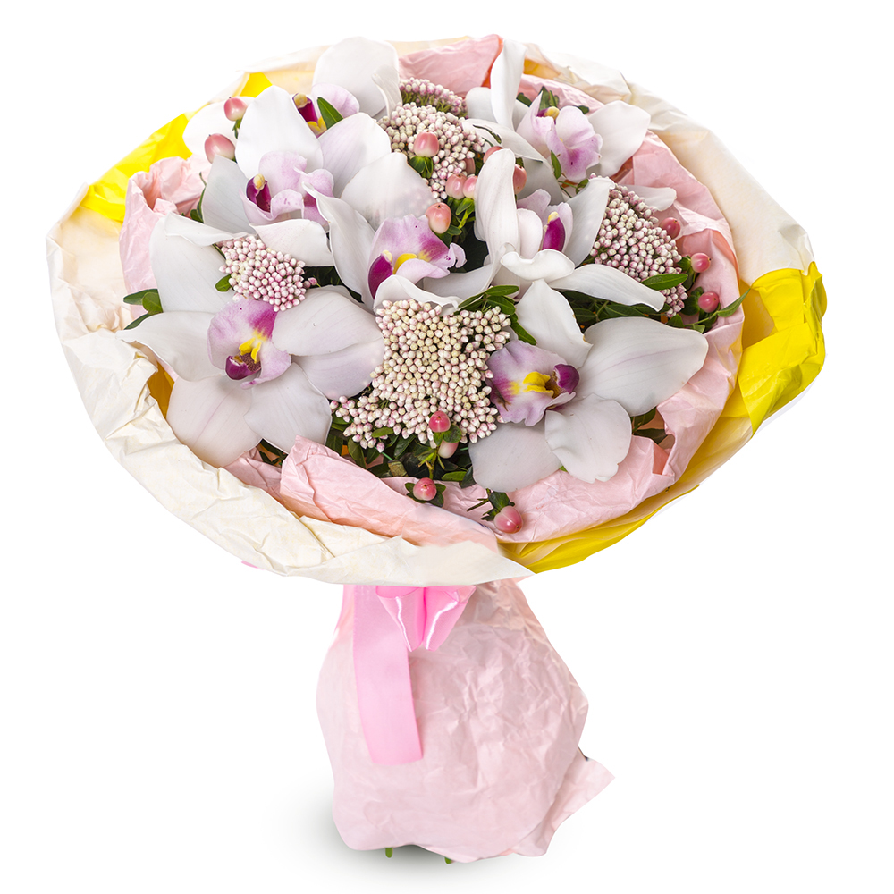 Букет из орхидей и озотамнуса
