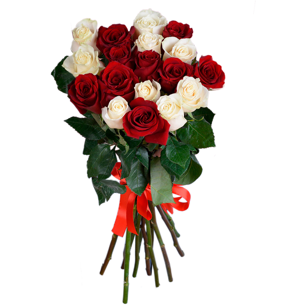 19 разноцветных роз Эквадор 70 см