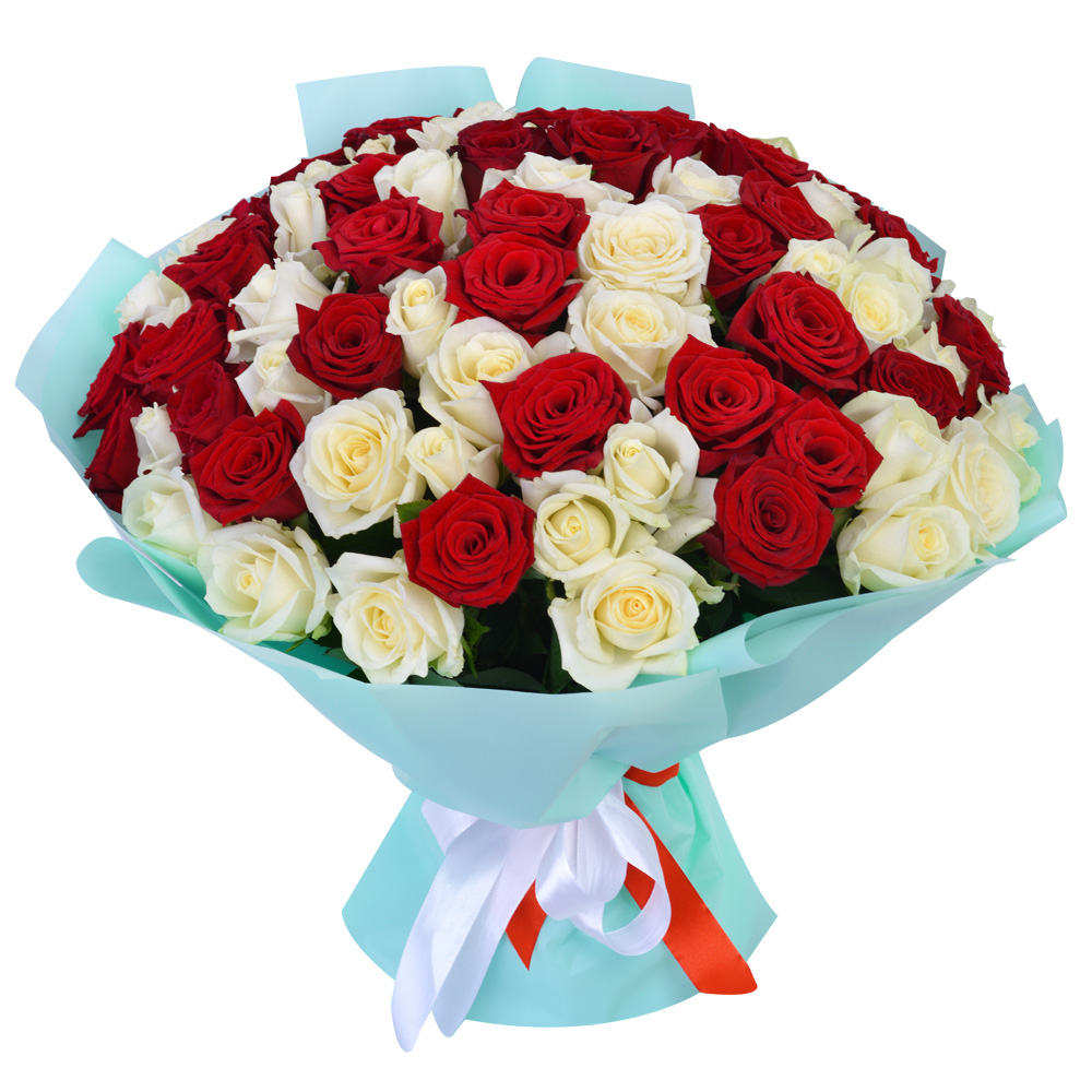 75 разноцветных роз Premium 40 см