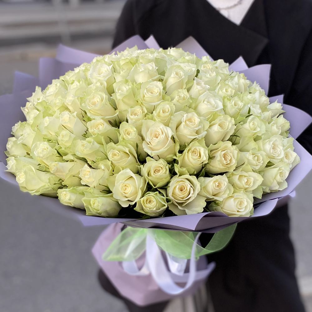Акция! 101 белая роза 40 см