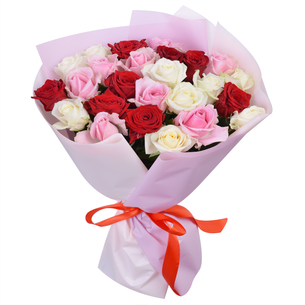 Букет из 25 разноцветных роз premium 40 см