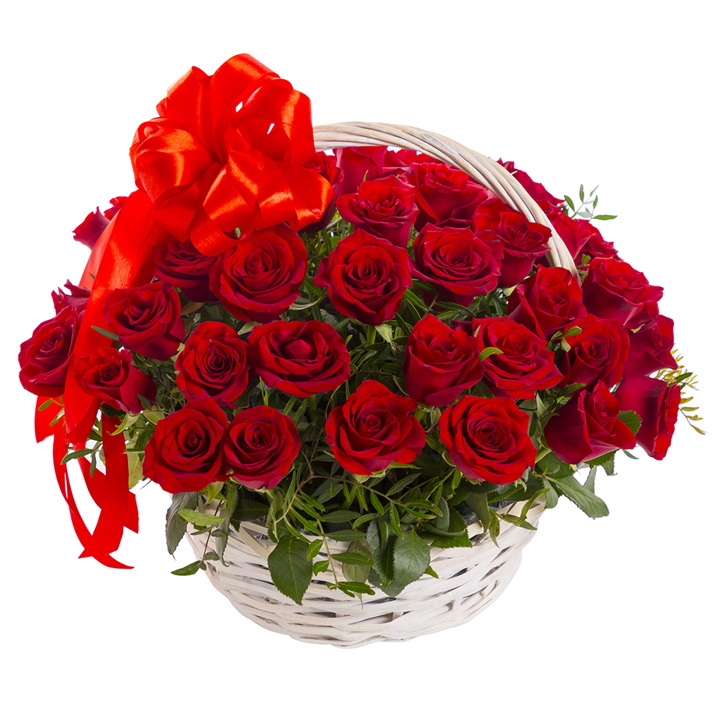 51 красная роза в корзине
