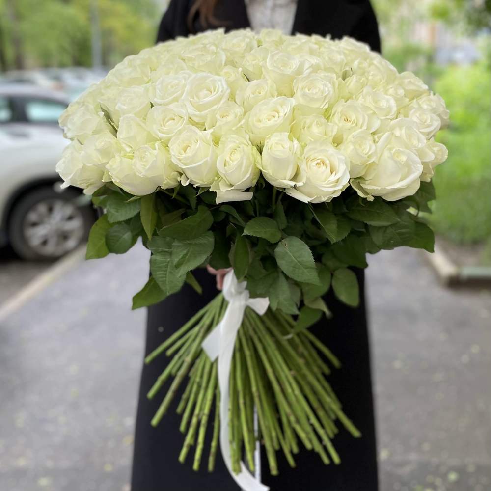 101 белая роза Premium 60 см.