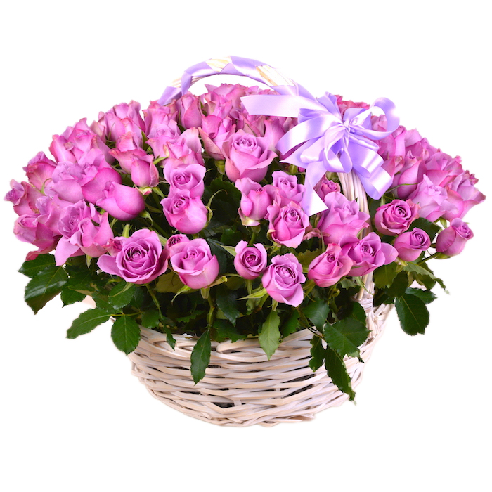 101 сиреневая роза в корзине