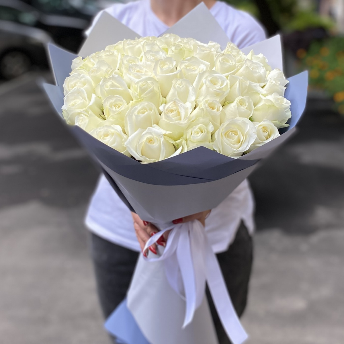 51 белая роза premium 50 см