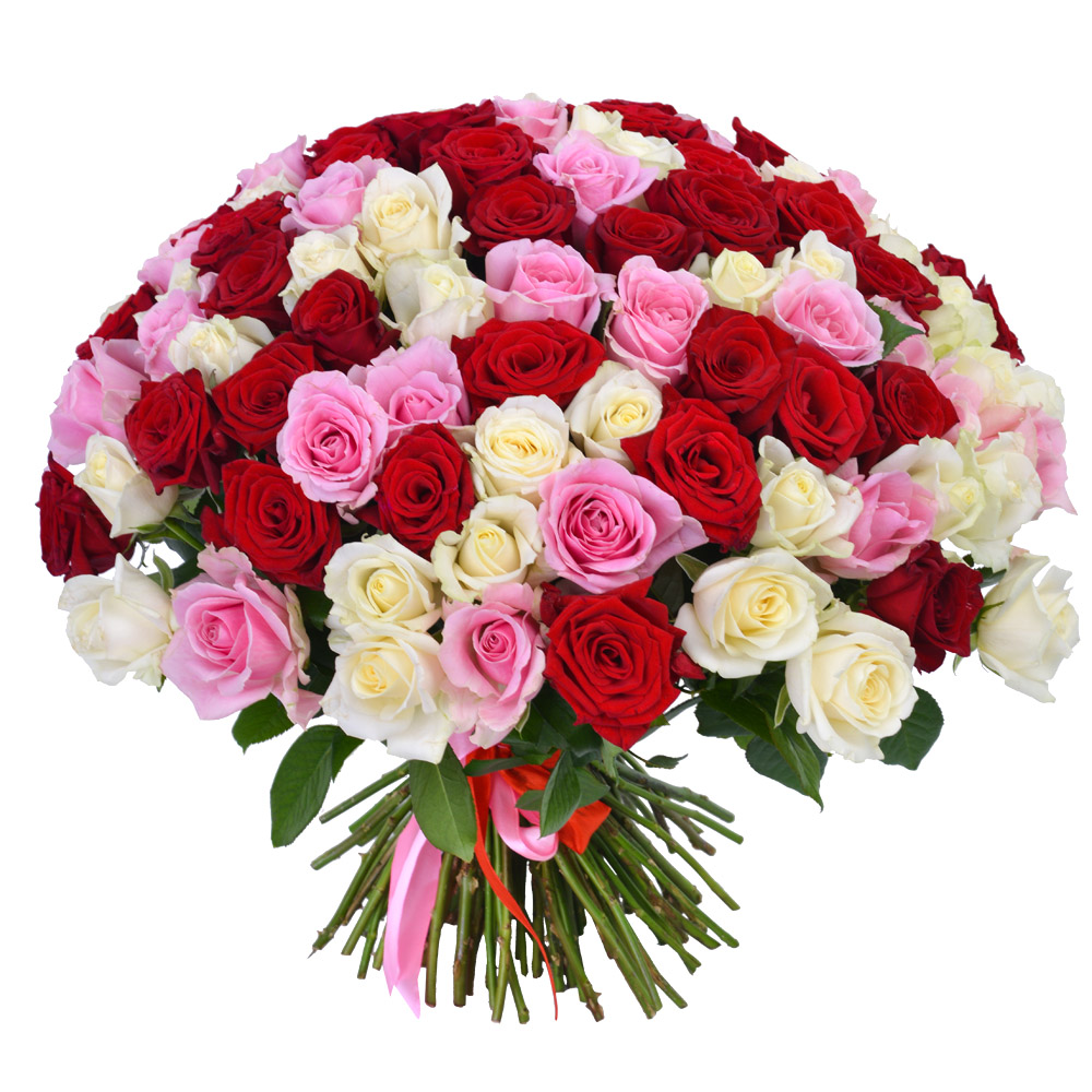 Букет из 101 разноцветных роз Premium 40 см