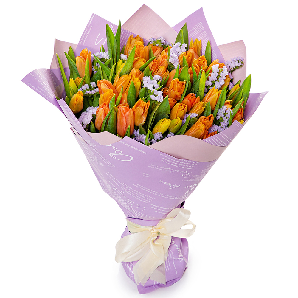 Букет из 51 оранжевого тюльпана